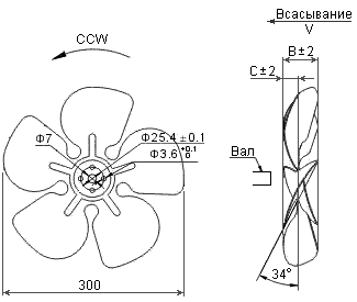 Исполнение V - при вращении крыльчатки против часовой стрелки (смотреть со стороны крыльчатки), воздушный поток направлен на двигатель.
