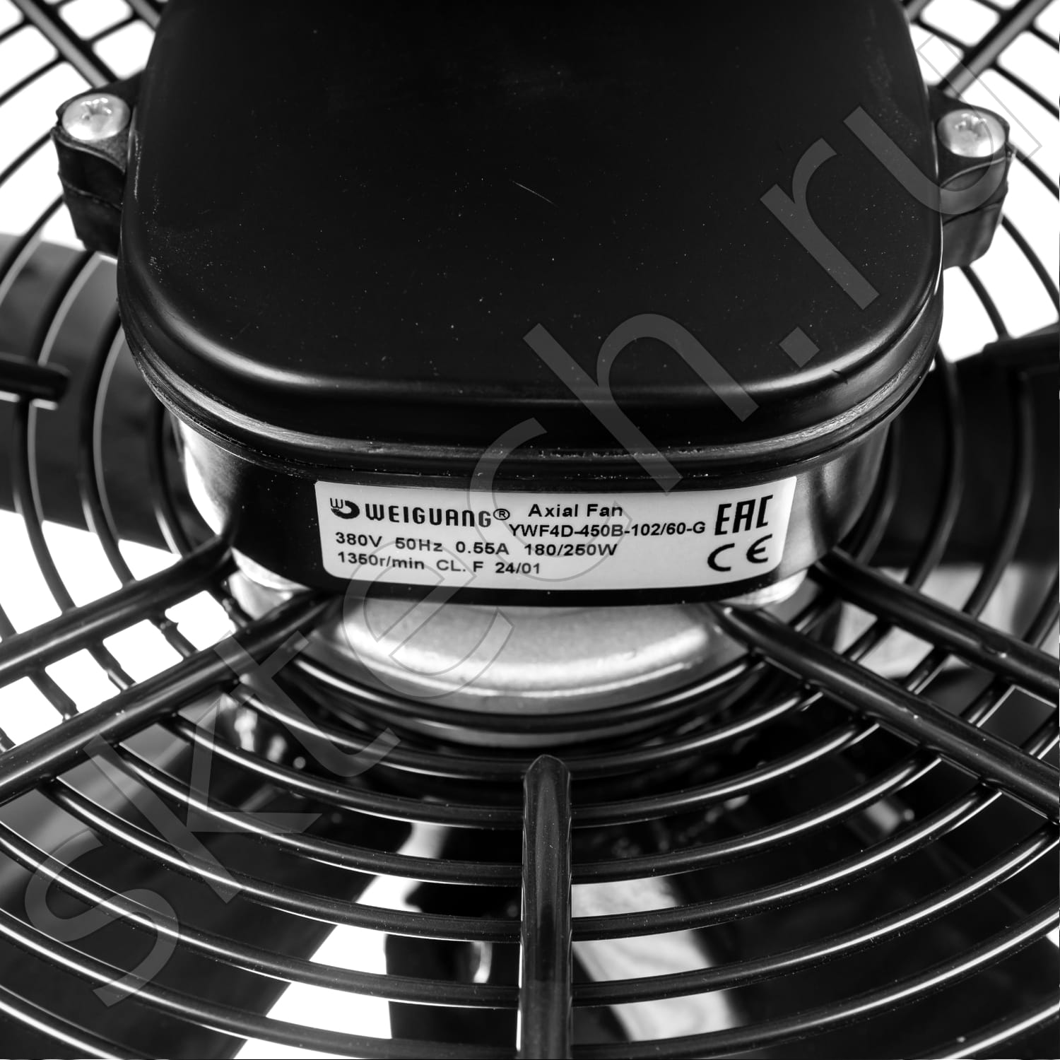 Вентилятор осевой YWF4D-450B-102/60-G с внешнероторным двигателем. Предназначен для систем вентиляции или теплотехники где требуется нагнетание воздуха внутрь прибора. Подключение с помощью клеммной коробки.
