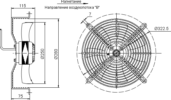 размеры вентилятора осевого YWF.A2S-250B7DII-A00