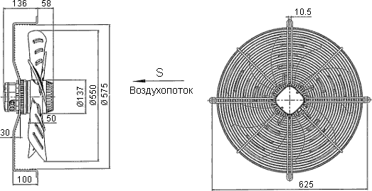 − Диаметр по крыльчатке 550 мм;