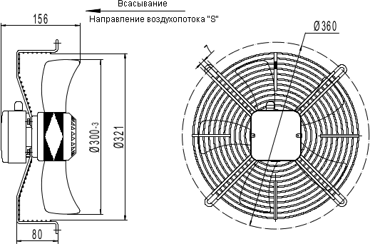 размеры вентилятора осевого YWF.A4S-300S-5DIA00
