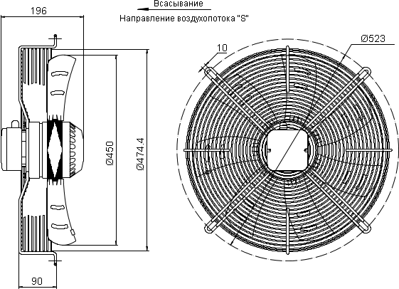 размеры вентилятора осевого YWF.A4S-450S7DI-A01