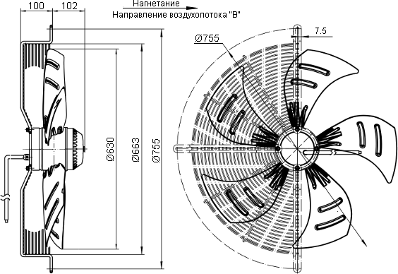 размеры вентилятора осевого YWF.A4S-630B-5DIIA00