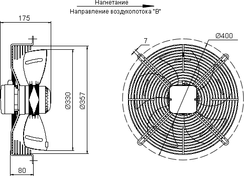 Размеры вентилятора осевого YWF.A4T-330B-5DIA00
