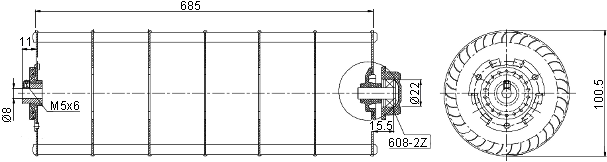Колесо тангенциальное (диаметральное) Q100x685R для установки в устройства кондиционирования воздуха, тепловые завесы.
