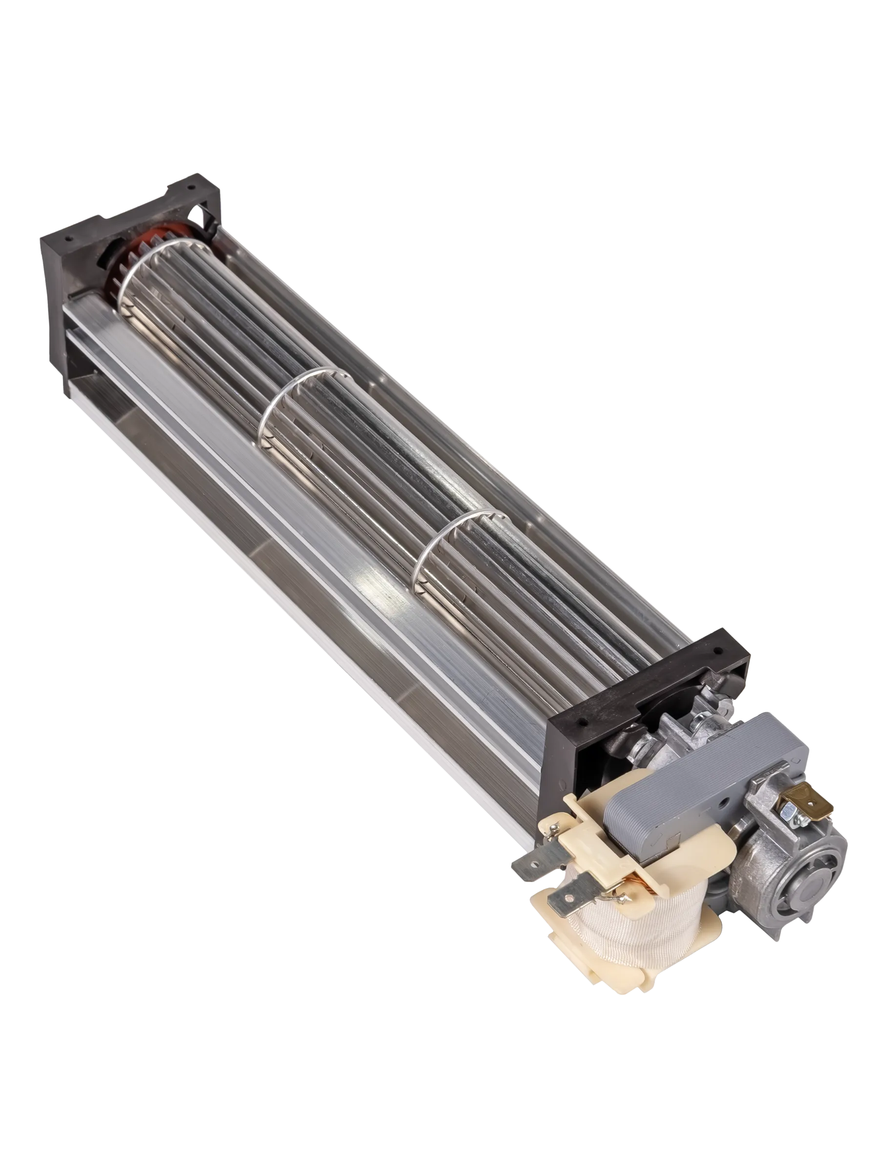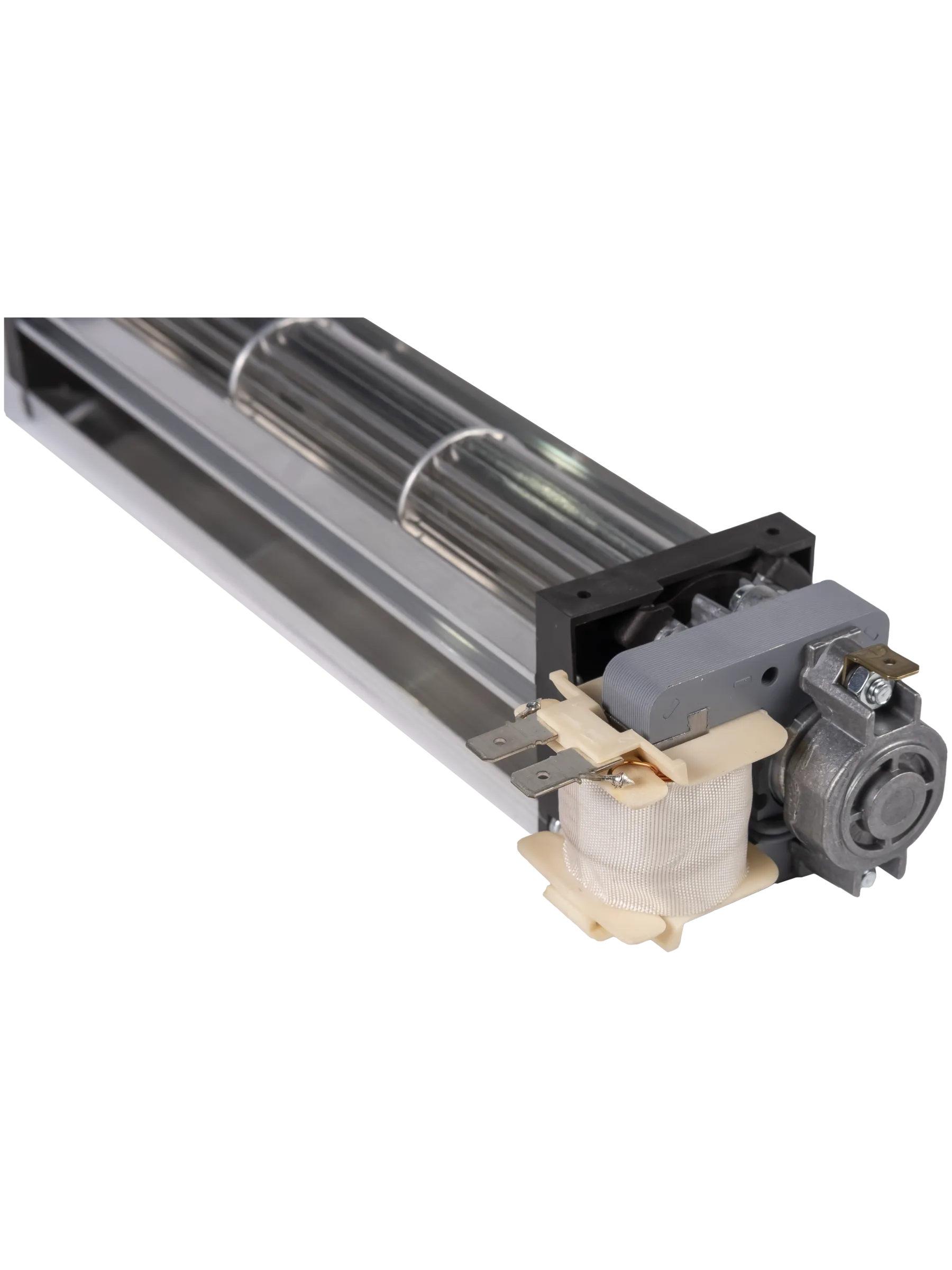 Принцип работы состоит в том, что вращение рабочего колеса обеспечивает перемещение воздушных потоков по всей длине вентилятора, формируя плоский равномерный выход воздуха. Он работает практически бесшумно с высокой производительностью при низкой скорости воздушного потока.