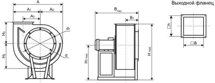 Габаритные размеры Bmax и H1max соответственно зависят от устанавливаемого двигателя. Габаритный размер Hmax зависит от положения корпуса и устанавливаемого двигателя.