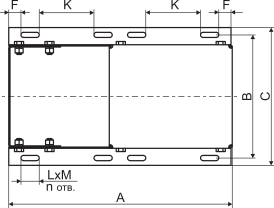 Габаритные и присоединительные размеры основания рамы вентиляторов серии 80-75