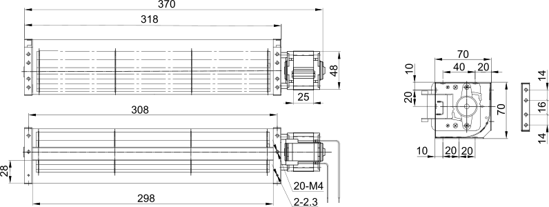 Тангенциальный (диаметральный) вентилятор ES-05029R23 напряжением питания 230В АС создает равномерный направленный воздушный поток посредством тангенциального вентиляторного колеса шириной 290мм.