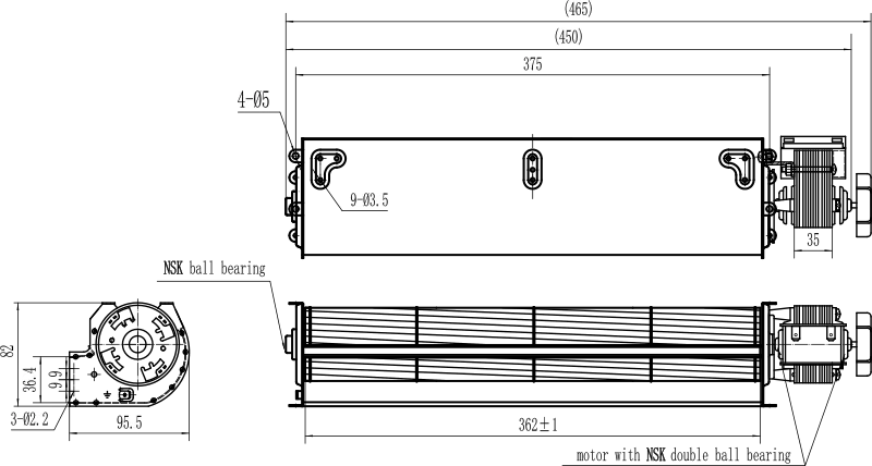 Вентилятор поперечного потока JQF35.60.360R создает широкий равномерный направленный воздушный поток шириной 360мм. Применяется в качестве вентиляторного узла воздушных завес. На выход вентилятора возможна установка нагревателя 1HZA760 2x1500Вт.