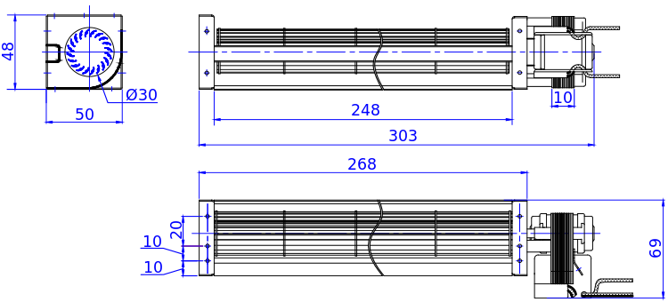 Тангенциальный (диаметральный) вентилятор VD104-230A создает равномерный направленный воздушный поток посредством тангенциального вентиляторного колеса.