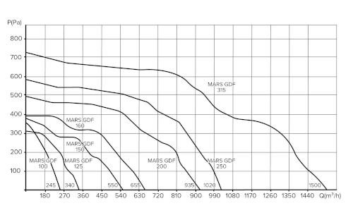 Вентиляторы MARS GDF предназначены для использования в приточно-вытяжных системах вентиляции. Направление потока воздуха зависит от того, как вентилятор будет установлен в системе. Материал лопаток рабочего колеса зависит от размера прибора: вентиляторы, диаметр которых меньше 200 мм, имеют пластиковые лопатки, если диаметр устройства больше 200 мм, лопатки у рабочего колеса из оцинкованной стали. Для приточно-вытяжной системы вентиляции монтаж возможен в любой точке вентиляционной системы и под любым углом. Корпус выполнен из оцинкованной стали, что защитит вентилятор от коррозии и гарантирует долговечность устройства.