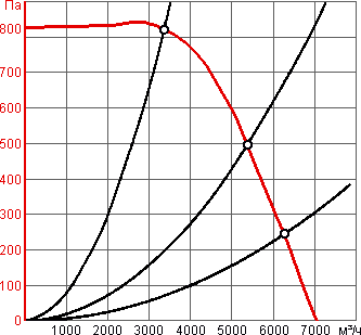 Максимальная производительность по воздуху − 7000 м³/ч при скорости вращения 1430 об/мин.