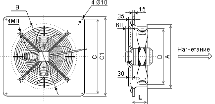 Размеры настенных нагнетающих вентиляторов серии YWF