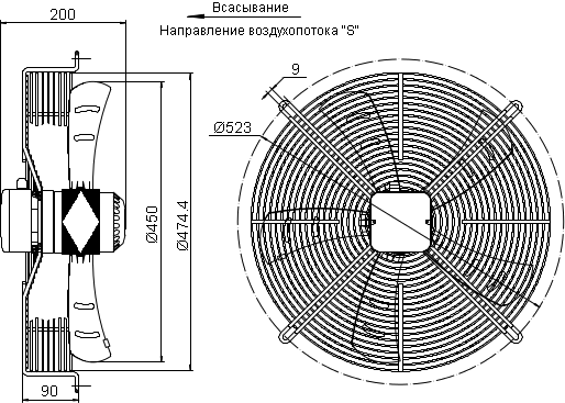 Размеры вентилятора осевого YWF.A4T-450S-5DIA00