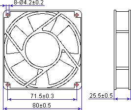 Размеры вентилятора YZ-8025