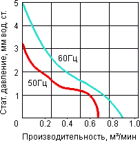 Зависимость производительности вентилятора YZ-8038 от статического давления