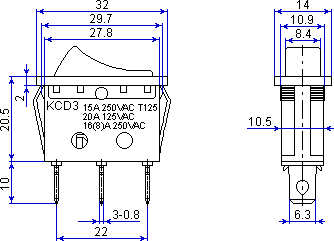 Клавишный выключатель KCD3-101N-4 Black Red выполнен в пластиковом корпусе черного цвета из PA66 Т125. Подсвечиваемая клавиша из поликарбоната, цвет красный. Подсветка - неоновая лампа на 220В АС.