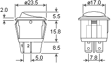 10 амперный однополюсный клавишный выключатель серии R13. Класс защиты IP40. Токоведущие части переключателя выполнены из медного сплава, контакты - сплав серебра. Корпус выполнен из материала Nylon 6.6 T85.