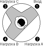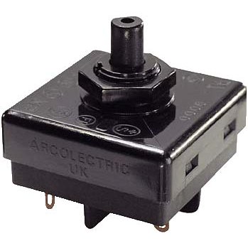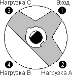 Четырехпозиционный однополярный поворотный переключатель. Каждая позиция переключается осью шагом в 90°. Входная линия и нагрузки могут быть подключены к любому из контактов. Возможен заказ стопора - для уменьшения количества возможных переключений