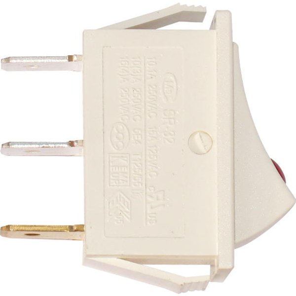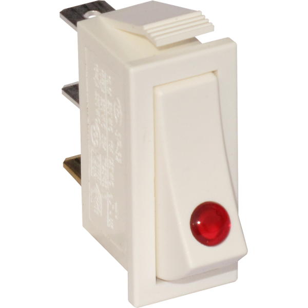 Клавишный выключатель SR32N WHITE LIT RED соответствует классу защиты IP40. Корпус и клавиша выполнены из материала PA66 UL94V2 T125.
