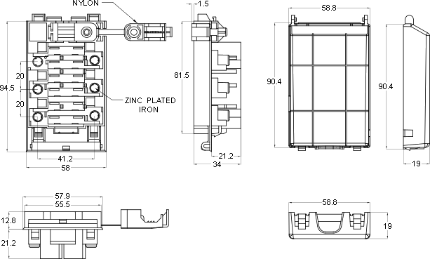 Закрытая клеммная колодка BGTB40A для подключения силового кабеля в электроплитах.