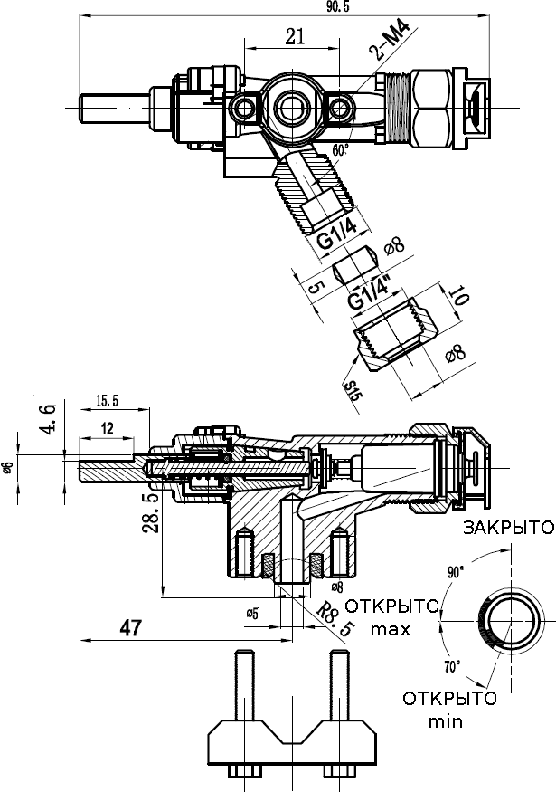 3. Момент силы на оси при вращении крана не более 0,05 Нм.